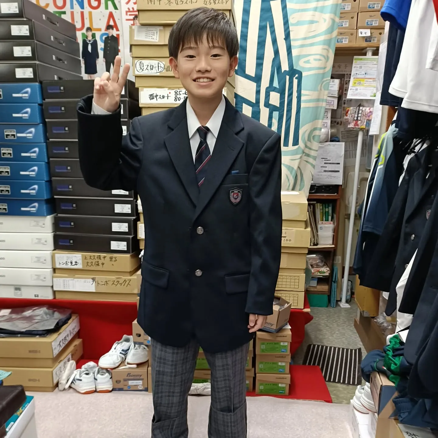 ご入学おめでとうございます🎊 2025/11/29 ご入学おめでとうございます🎊 #さいたま市#与野西中学校#与野南中学校#与野東中学校#与野八王子中学校#上大久保中学校#大久保中学校#大原中学校#制服採寸#体操着採寸#上履き#通学靴#通学カバン#レンタルブレザー#さいコイン#たまポン #京呉苑 #ふじや呉服店 #与野本町店